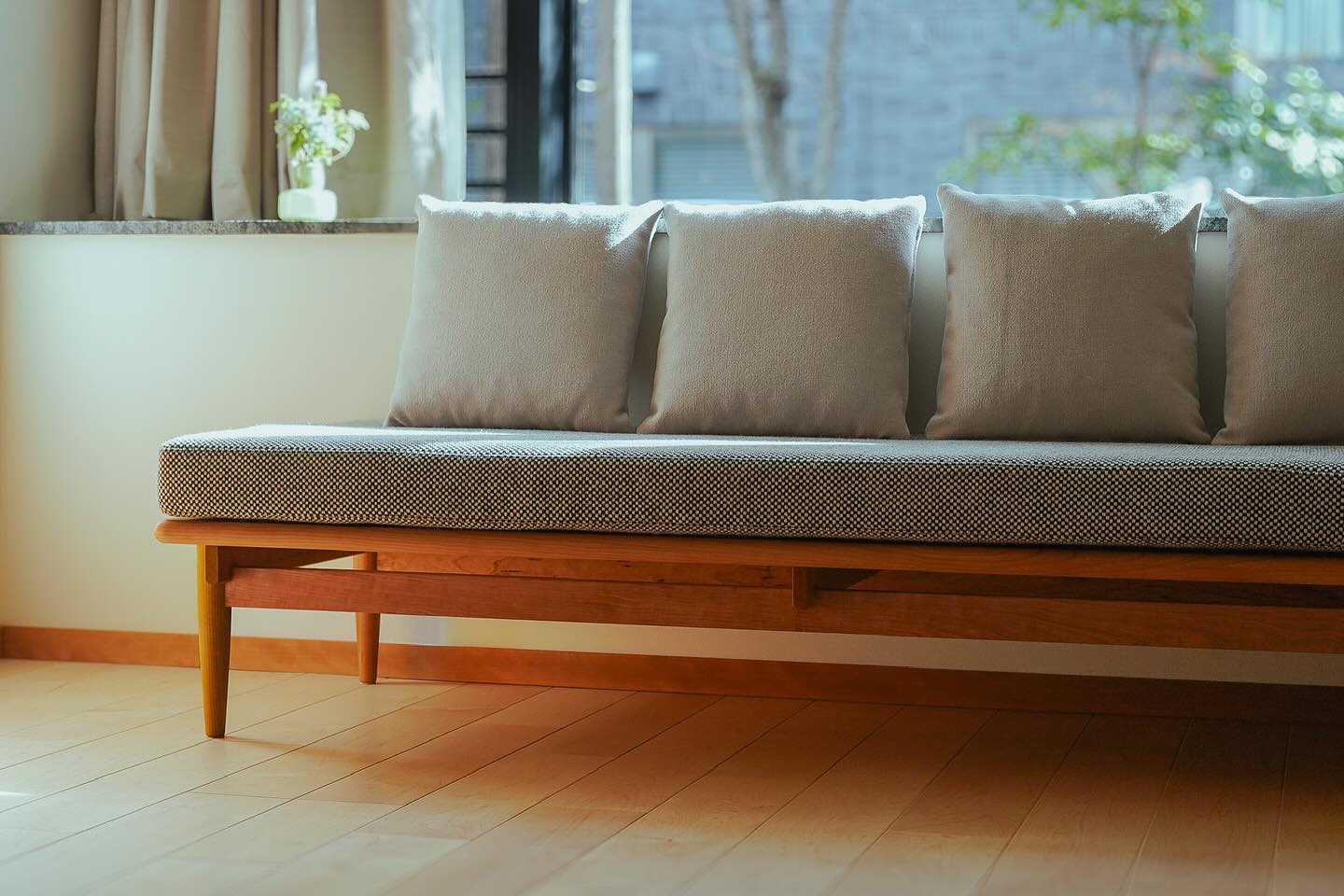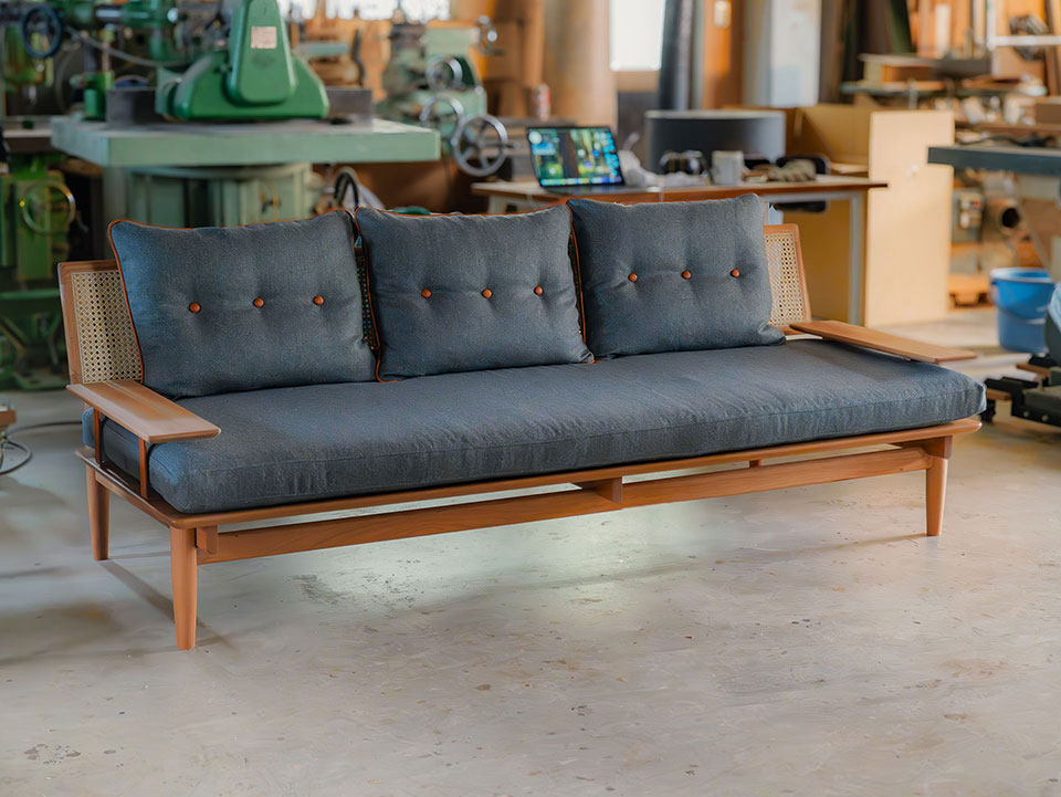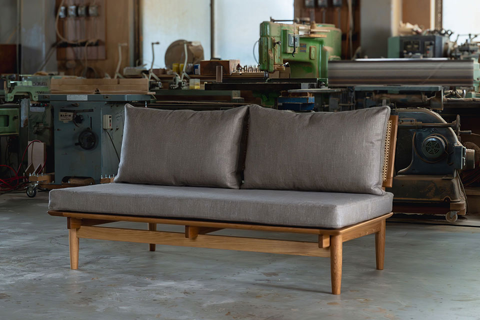 デザインだけでなく素材にもこだわりを追求したソファ。