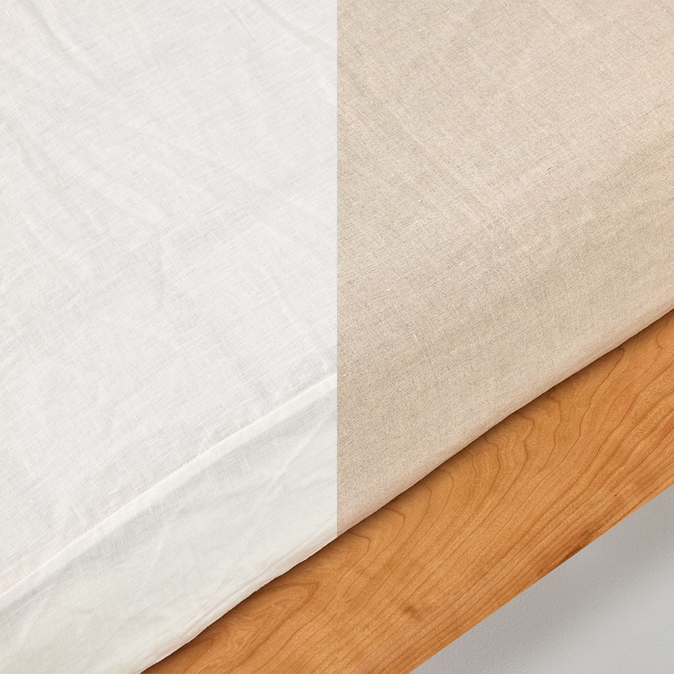 フランス産のリネンを使用した上質なボックスシーツ。優れた速乾性と高い通気性を備え、蒸れずにさらっとした肌触りを保ちます。オールシーズン使用可能ですが、特に寝汗の多い季節に最適です。素材感を活かした2種類のカラーからお選びください。