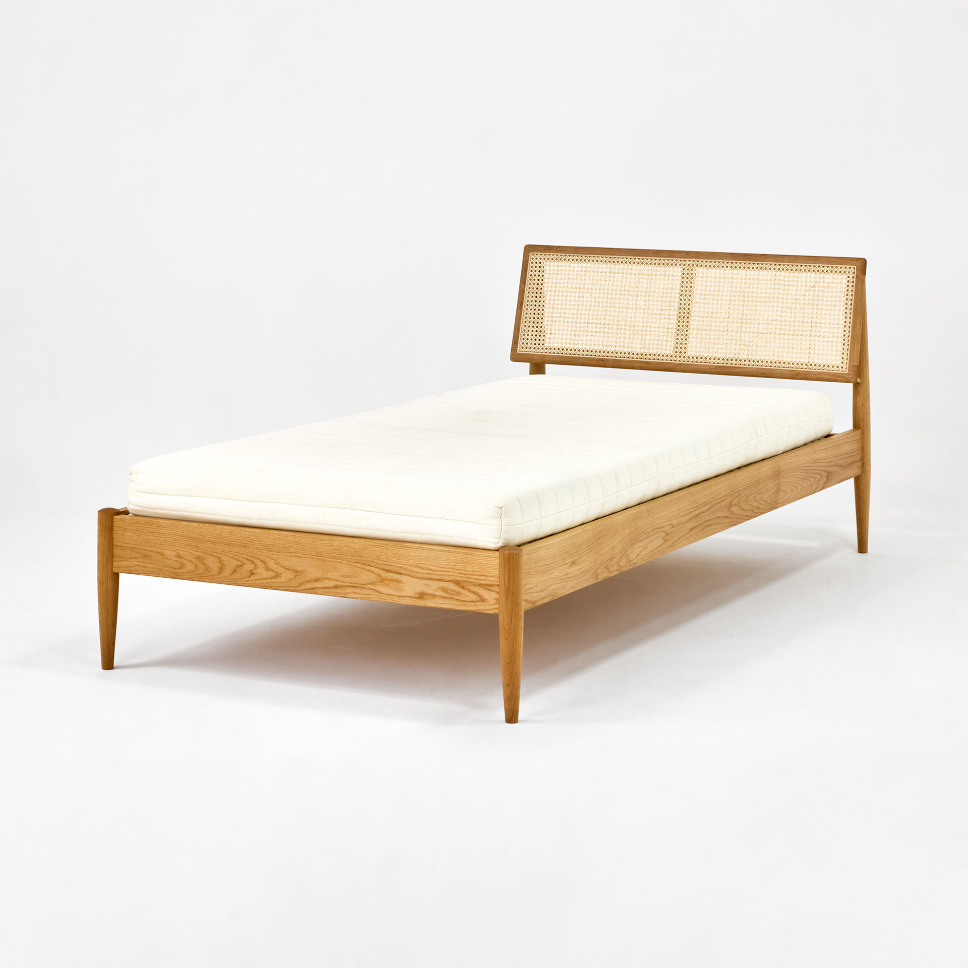 特立した一本一本の木製スラットが体の曲線に沿って沈み込み、横向きでの寝姿勢や寝返り時の身体の動きもしなやかにサポートします。組み込み可能なベッドフレームのモデルにセットすることでより贅沢な寝心地へグレードアップが可能です。